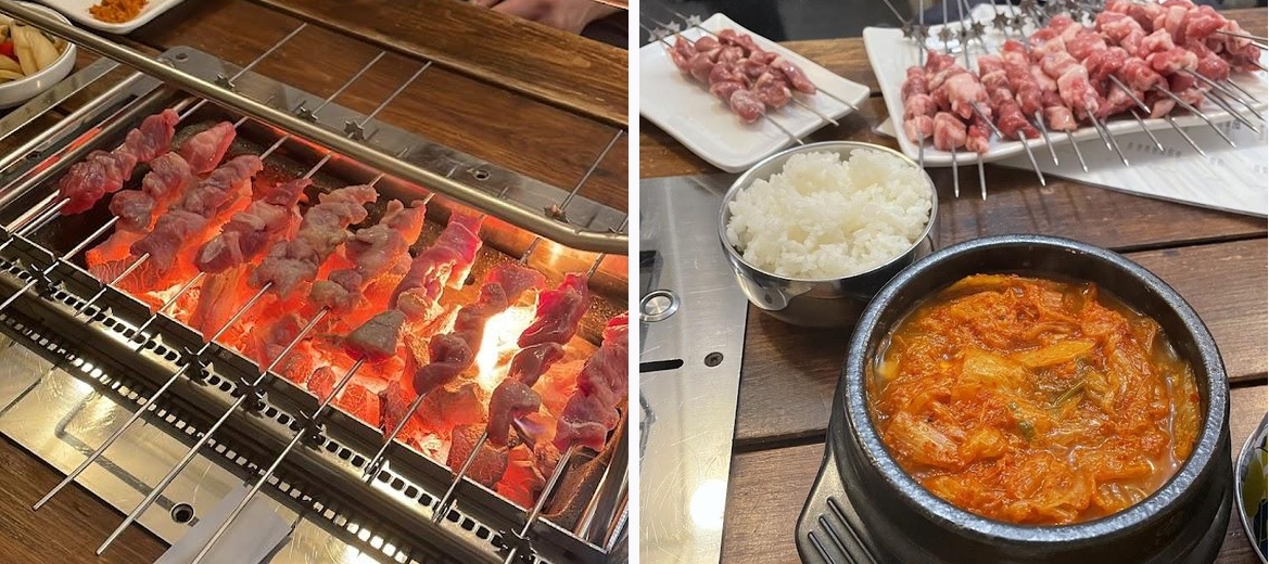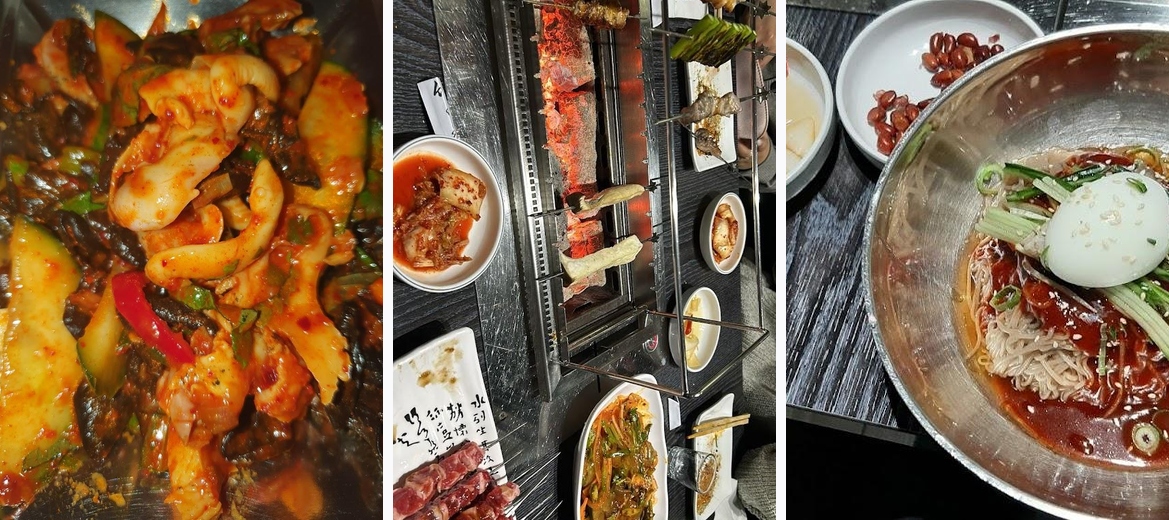 The lamb skewers and naengmyeon are must-tries. The lamb soup and various pancakes also receive high praise from visitors.